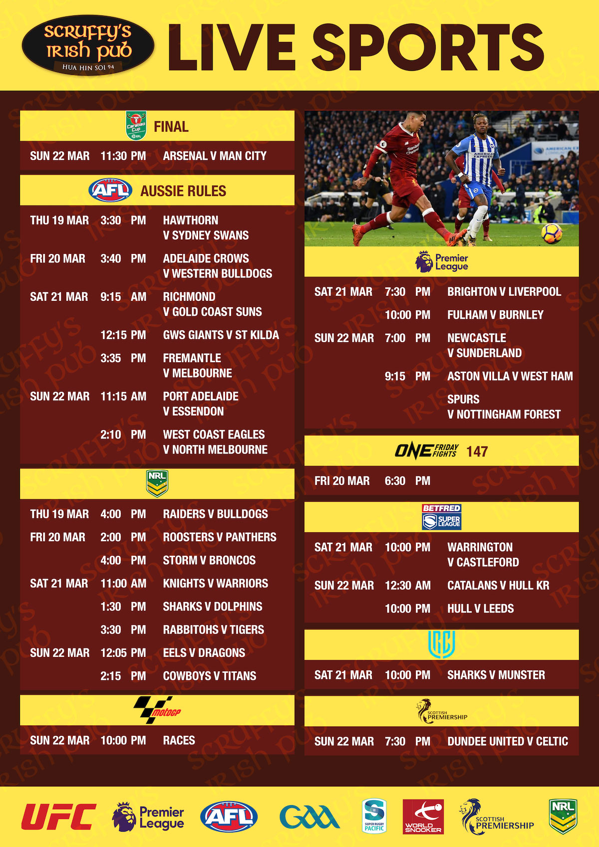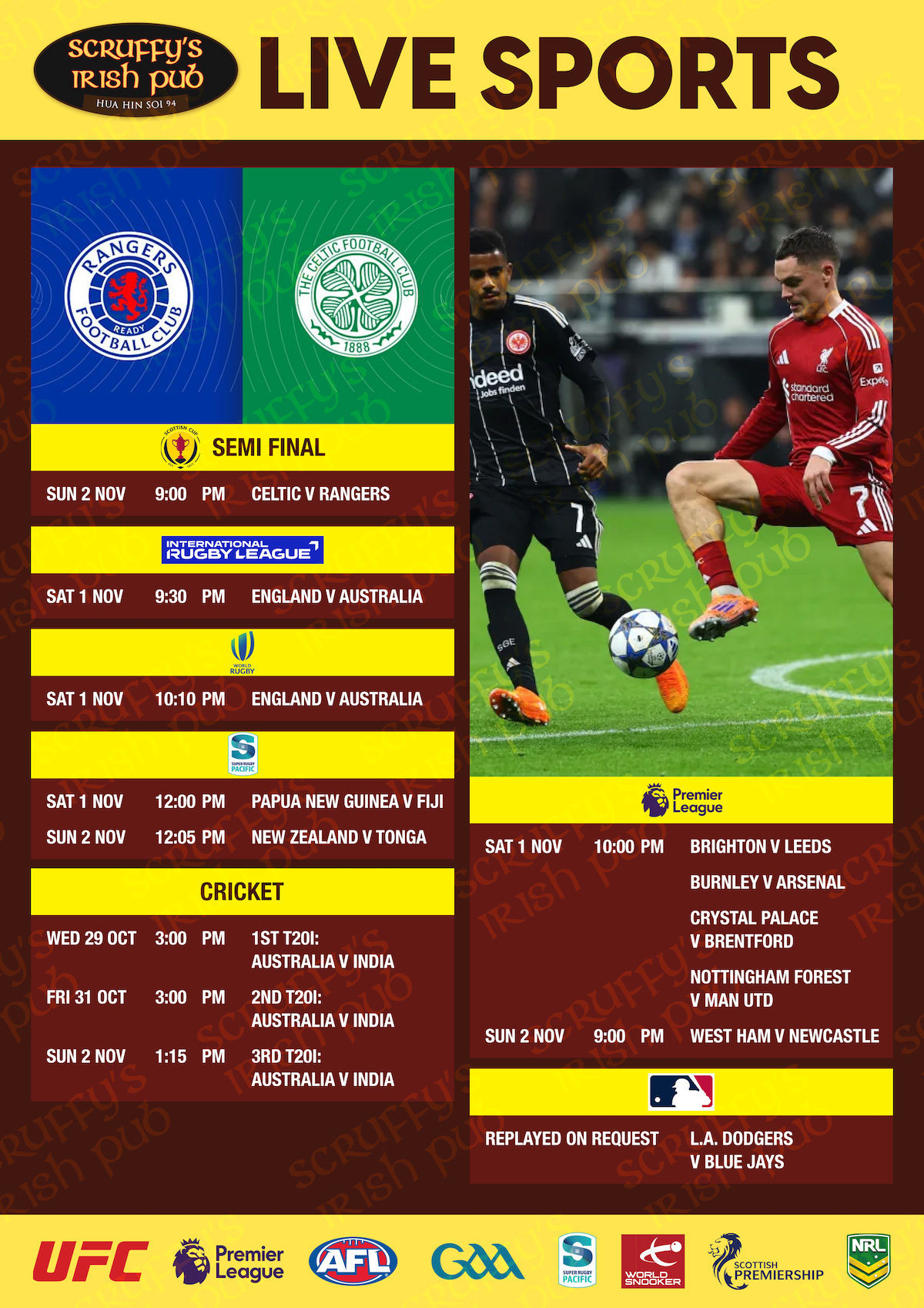 Scruffy's brings authentic Irish charm to Hua Hin with traditional beers, hearty Irish and Thai dishes, live sports, music, and warm hospitality—all in a cozy, air-conditioned setting.